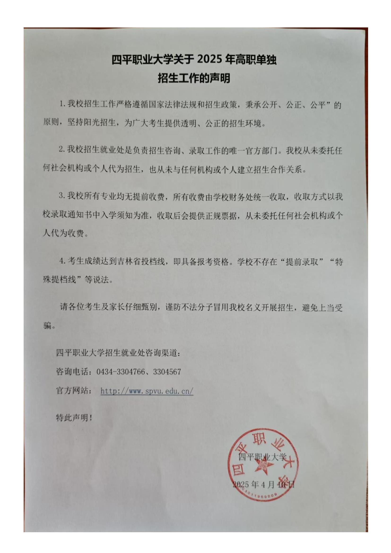 ËÄÆ½Ö°Òµ´óѧ¹ØÓÚ2025Äê¸ßÖ°µ¥¶ÀÕÐÉú¹¤×÷µÄÉùÃ÷